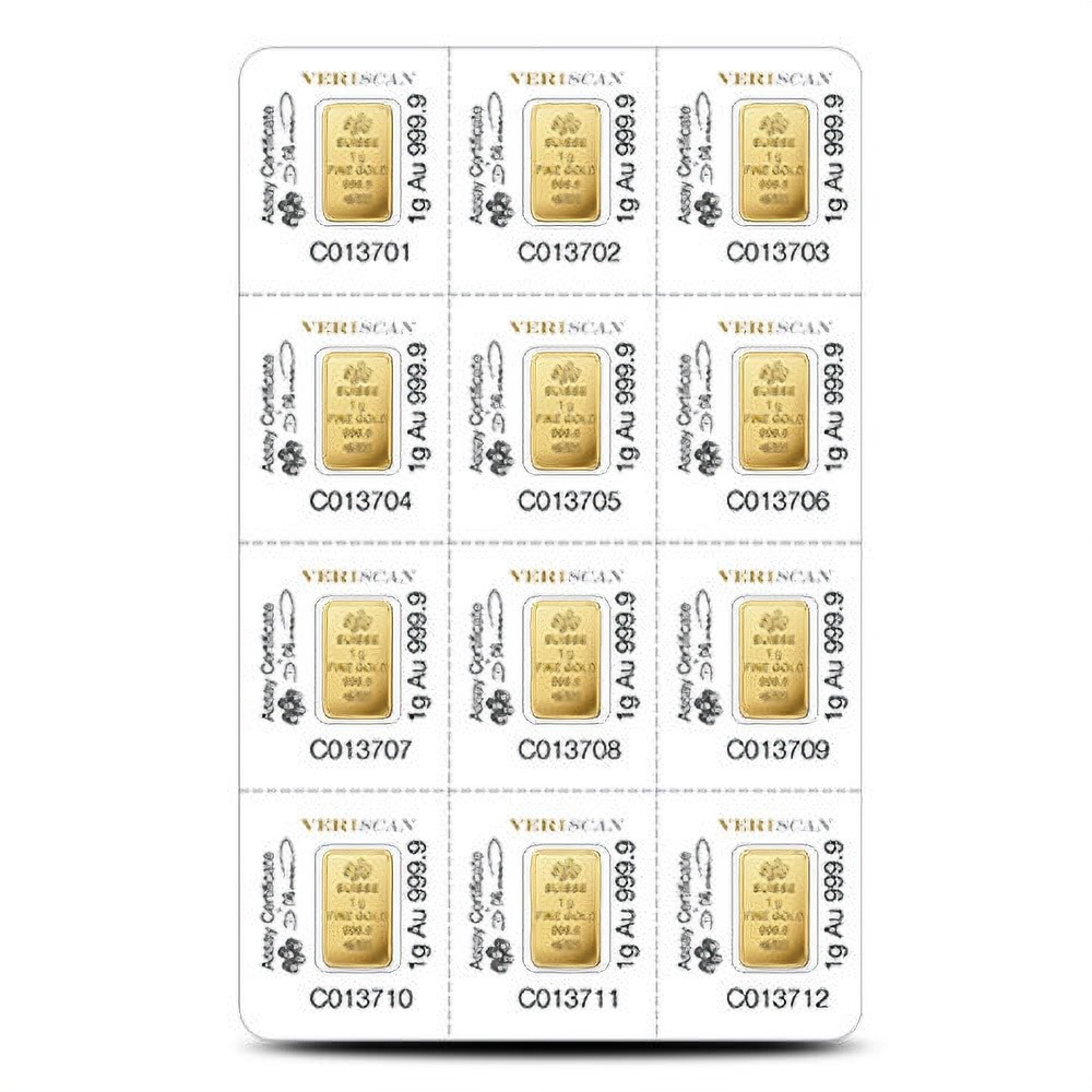 Each 12 Gram PAMP Suisse Divisible Gold Bar in this product listing from JM Bullion comes with a protective blisterpack. The blisterpack contains a total of 12 individual 1 Gram Gold bars. All of the bars are available in brand-new condition with the blisterpack ensuring that each 1 Gram Gold bar is individually-sealed inside of its own assay card.
