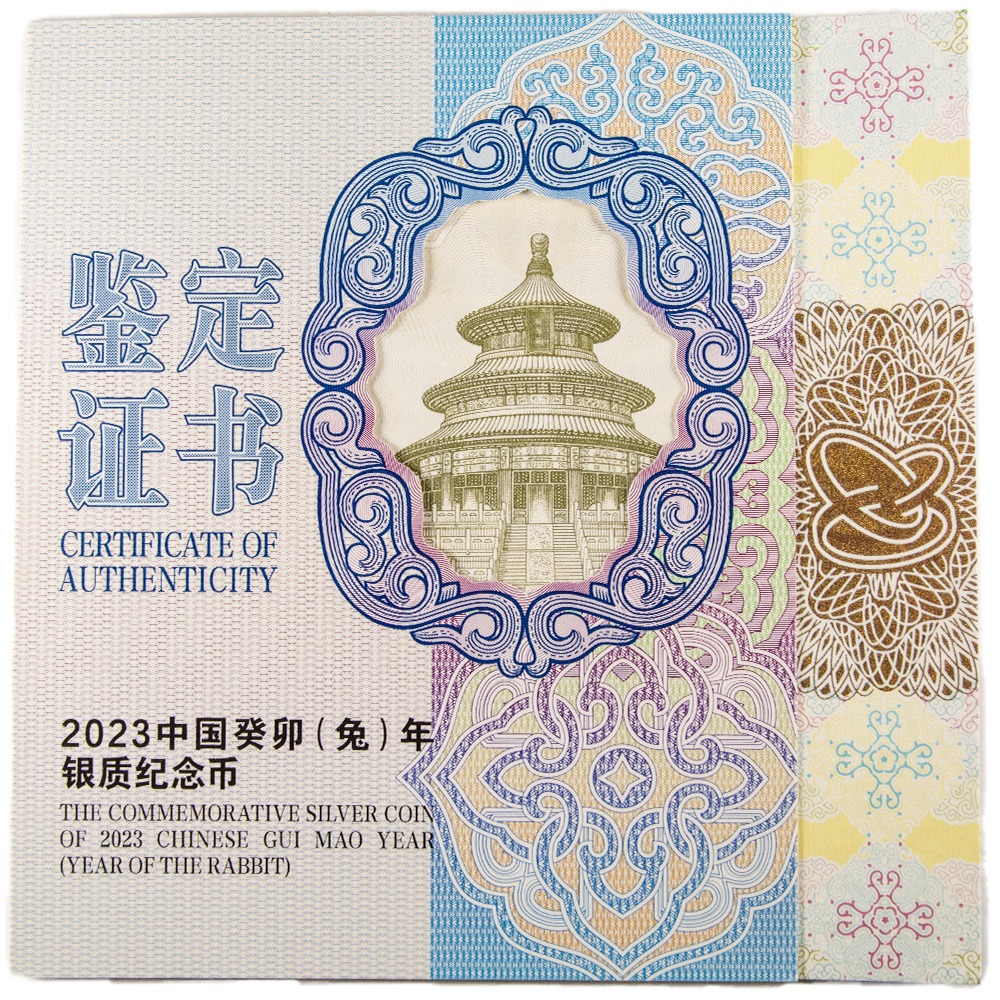 The 2023 Chinese Silver Lunar Year of the Rabbit Coin ships fully insured against loss or damage and is a substantial collectible with a visually striking rectangular shape and intricate engraved artwork. It comes housed in official mint packaging along with a mint-issued Certificate of Authenticity.
