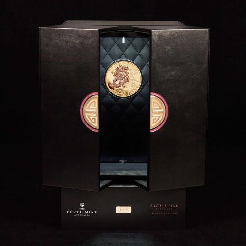 The Jewelled Dragon is a spectacular work of art fusing two of Australia’s natural wonders, gold and pink diamonds, in an exquisite collaboration from The Perth Mint and Argyle Pink Diamonds. With meticulous attention to detail, 18 carat rose gold has been handcrafted into a stunning three-dimensional representation of the powerful Chinese dragon. Rich in ancient symbolism, the legendary horned creature is pavé-set with 117 exquisite Argyle pink diamonds with an additional emerald from Colombia’s legendary Muzo Mines, as its eye.