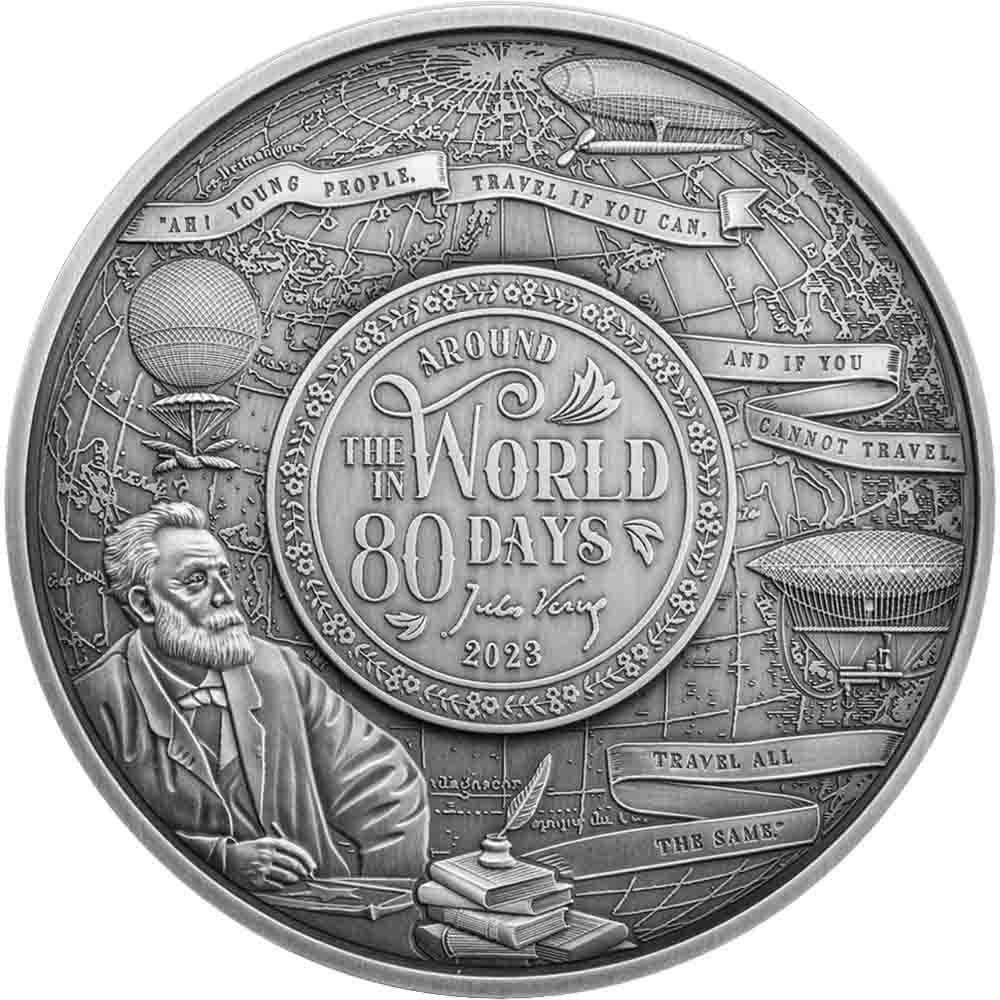 Jules Verne’s seminal work in his career is the fictional novel Around the World in 80 Days. Published in 1873, this incredible work marks 150 years in publication. The French writer’s great work is celebrated with a beautiful antique silver coin from the Republic of Djibouti. Right now, 2023 180 Gram Antique Djibouti Silver Around the World in 80 Days Coins are available to purchase online.