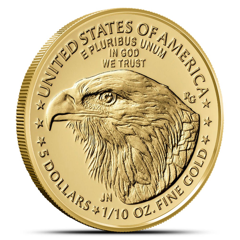 The 1/10 oz Proof American Gold Eagle was one of the final two coins introduced in this series. When the US Mint launched Proof American Gold Eagles in 1986, only the 1 oz coin was offered to collectors. The 1/2 oz coin debuted in 1987, followed by the 1/10 and 1/4 oz coins in 1988. Historically, the 1/10 oz Proof Gold Eagle has proven popular with collectors and holds the third-highest mintage in program history behind the first two issues of the 1 oz Proof Gold Eagle.