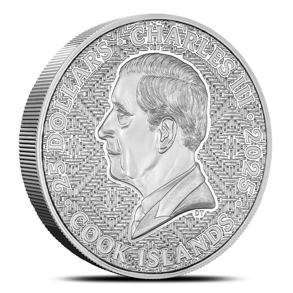On the obverse of 2025 Proof Cook Islands Silver Samurai Coin, you’ll find a bust of King Charles III. This left-profile relief from Dan Thorne depicts His Majesty without a crown on his head.